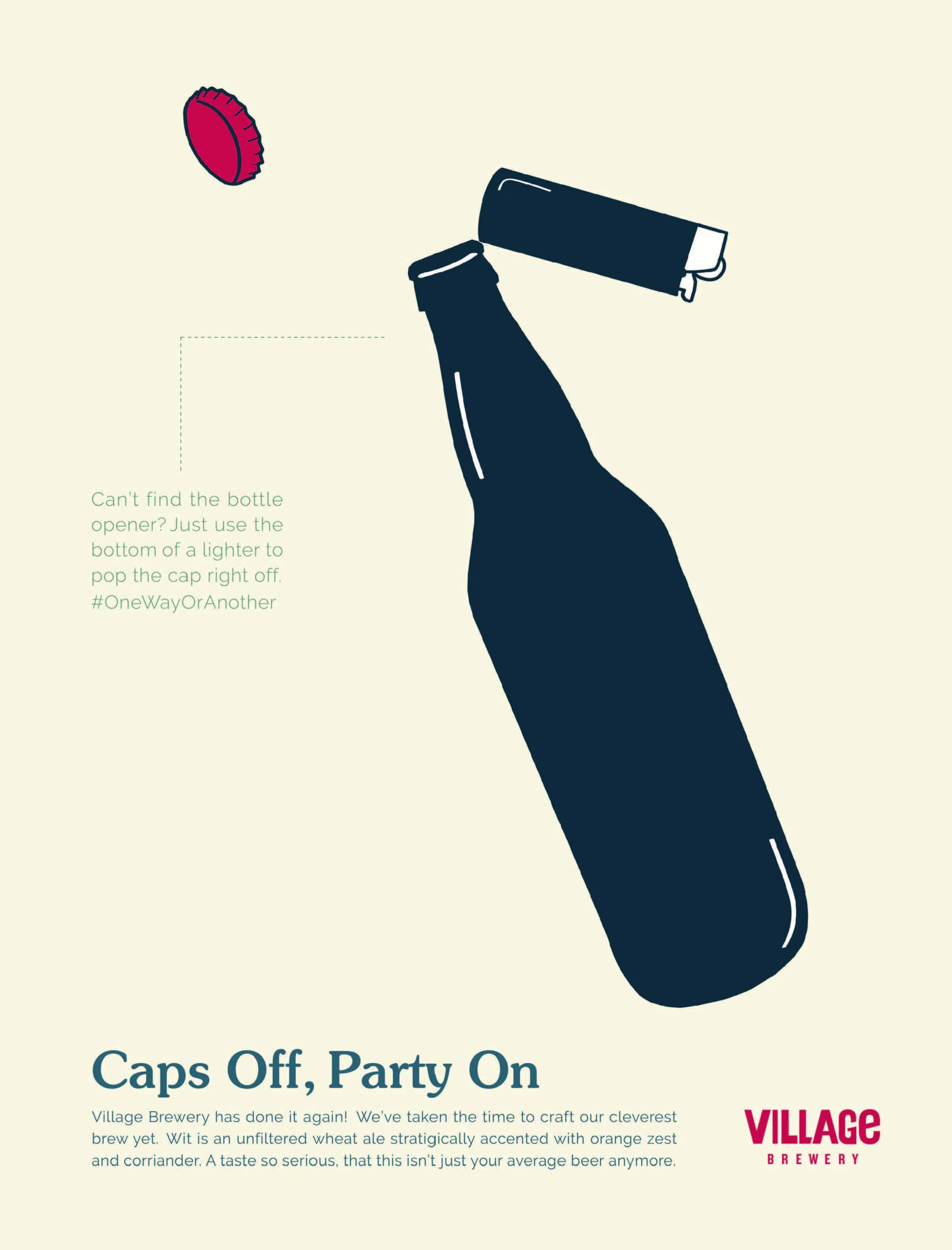 This advertisement series is a hypothetical exercise promoting Village Brewery’s Wit beer. Exploring and solving simple drinking issues with creative beer life hacks.