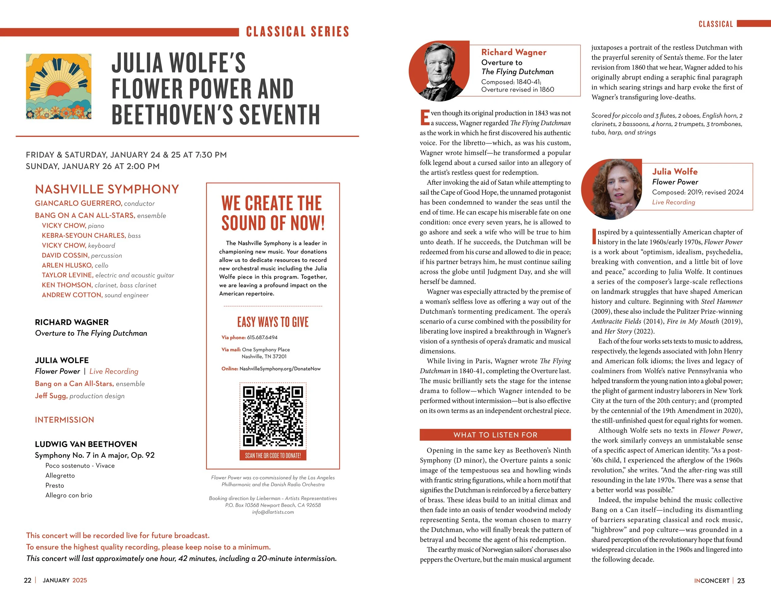 A monthly program guide showcasing venue concerts. Completed the first redesign of the publication in 2019, with a review and minor updates made in 2024.
